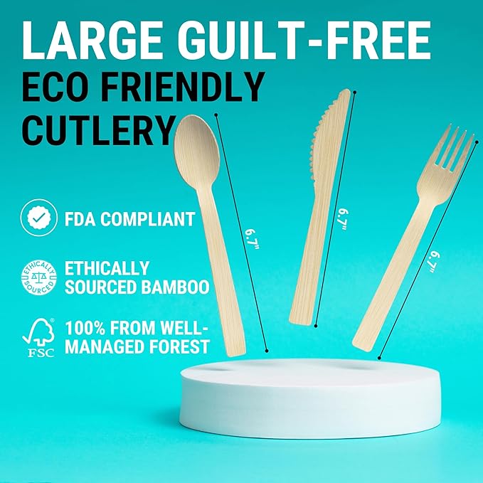 - FLAVOR-FREE & SMOOTH: Taste Your Meal, Not Your Utensils! Unlike Wooden Cutlery, Disposable Bamboo Cutlery Is Naturally Flavorless, With No Aftertastes.