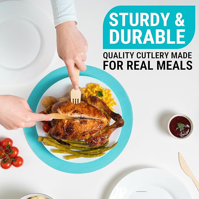 - BUILT TOUGH FOR REAL MEALS: Say Goodbye to Flimsy Biodegradable Utensils Snapping in The Middle of Your Meals. Say Hello To The Sturdiest Disposable Cutlery in The Market.
