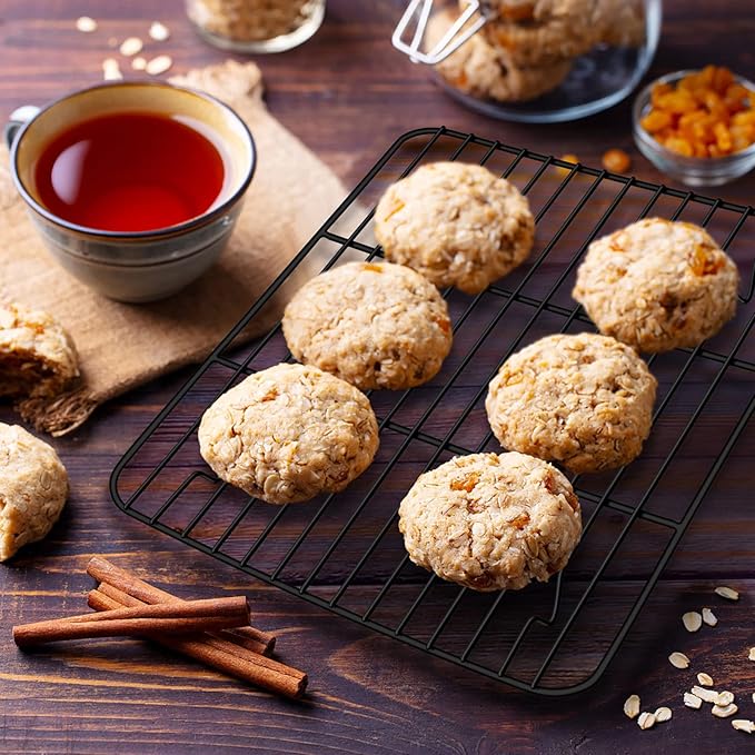 - VERSATILE - Measures 8.7-inch x 6.2-inch, Fit for a 9.4'' x 7.3'' sheet pan, Perfect for cooling cakes, pies and tarts, baking cookies, pizza and bacon, grilling and smoking meats like steak and chicken wings, roasting vegetables and fries, dripping grease and sauce off the food, decorating donuts or cake, Idea gift for your family and friends