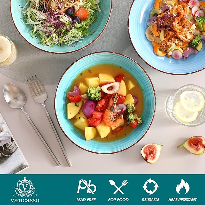 - 【Enjoy Pasta and Other Delicacies】 These 38-ounce pasta bowls are suitable for soups, cereal, burrito bowls, stir fries, seafood, stews, casseroles, and more. vancasso pasta bowls are suitable for all delicious food!