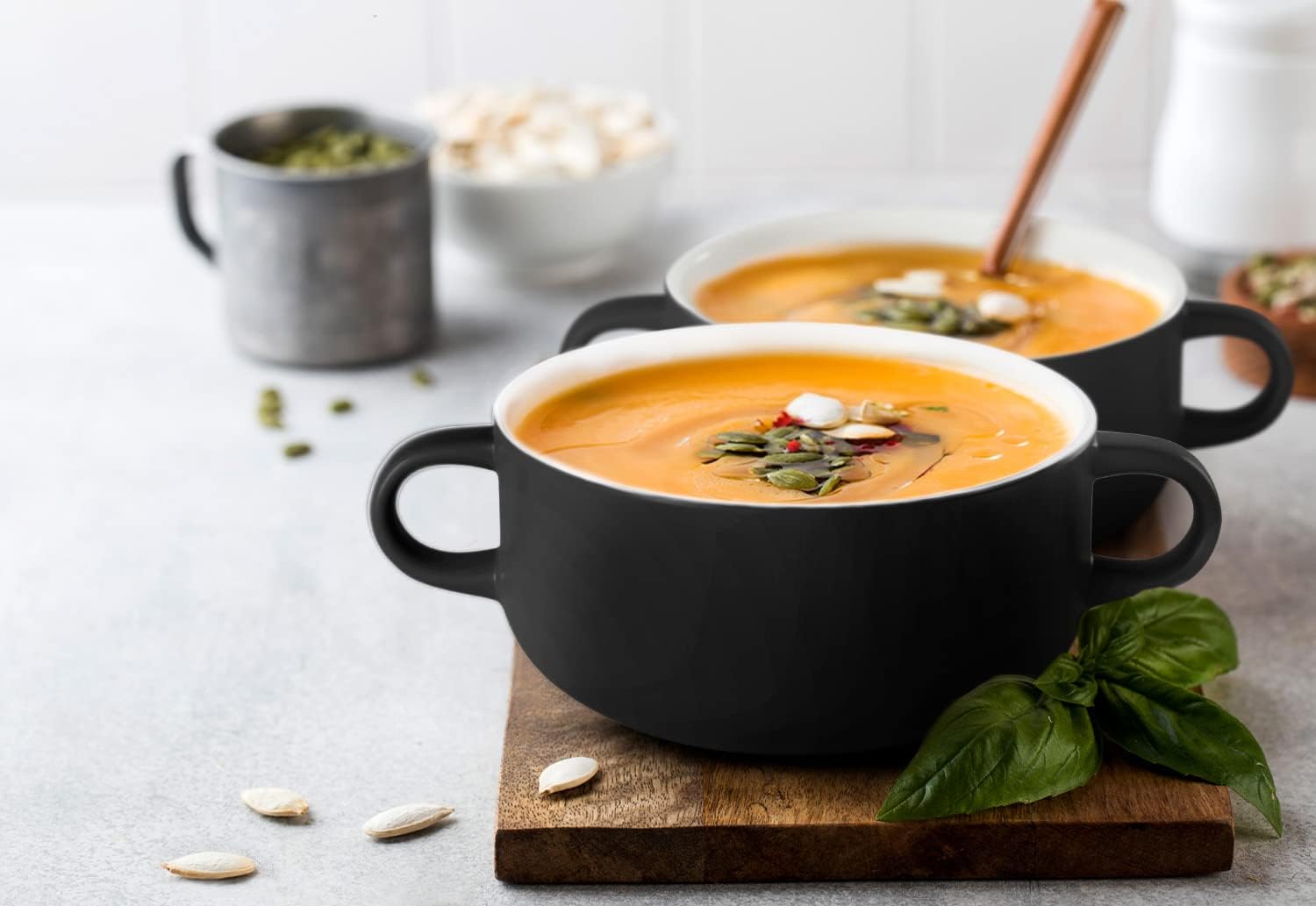 Kook Soup Crocks, Ceramic Bowls, Broil, Oven, Microwave and Dishwasher Safe, with Handles, For Casserole, Pasta, Cereal, 18 oz, Set of 4 (Black)