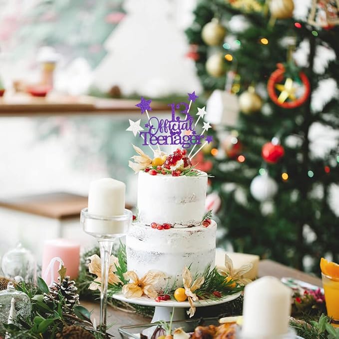 Glittery 13 Ofiicial Teenager Cake Topper with Star,13th Happy Birthday Cake Topper Party Decorations Party Supplies for Boys Girls Purple Silver