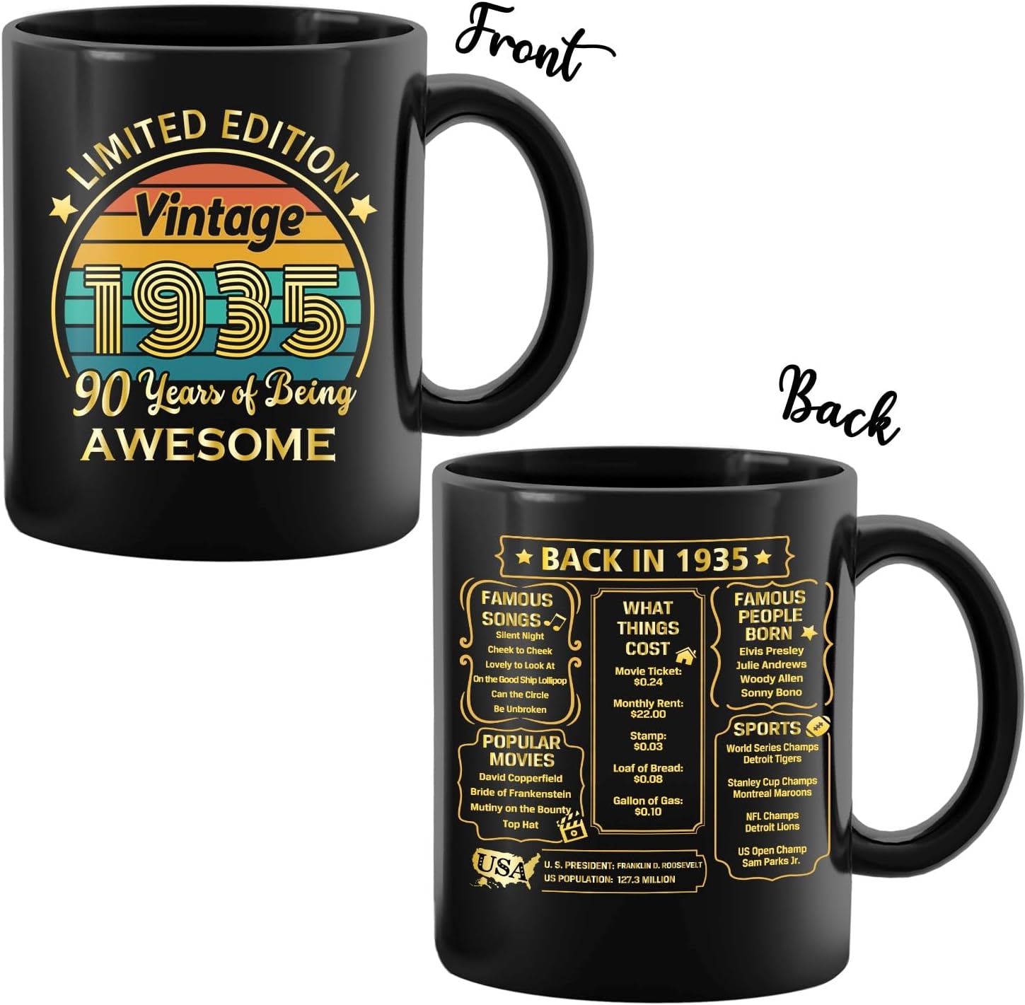 - Nostalgic Design: Featuring a stylish and timeless design, this mug highlights the significance of the year 1935. Ideal for those who appreciate a touch of nostalgia, it's a unique and thoughtful gift that stands out from the ordinary.