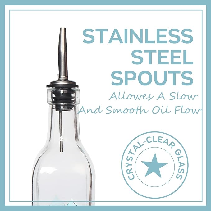 - Premium Lead-Free Glass: Crafted from high-quality lead-free glass, our oil dispenser ensures a pure taste and safe usage of your oils, while the 18/8 stainless steel pour spout provides a smooth, non-drip stream for precise pouring.