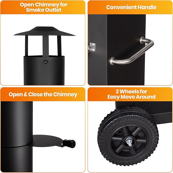 - 【Perfect Temperature Control】 The built-in thermometer displays the max 700℉ baking temperature in real-time, allowing you to monitor the fire temperature and control it by adding and reducing wood accurately. You can also adjust the fire by vent valve on the door and chimney.