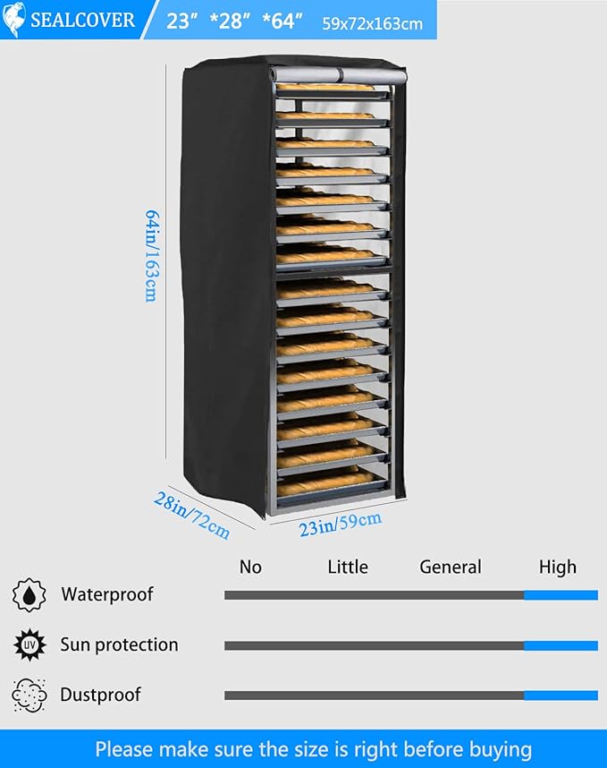 Sealcover Pan Rack Cover, High Density Waterproof and Dustproof Bread Rack Cover, 23"x28"x64", Bakery Single Rack Covers.
