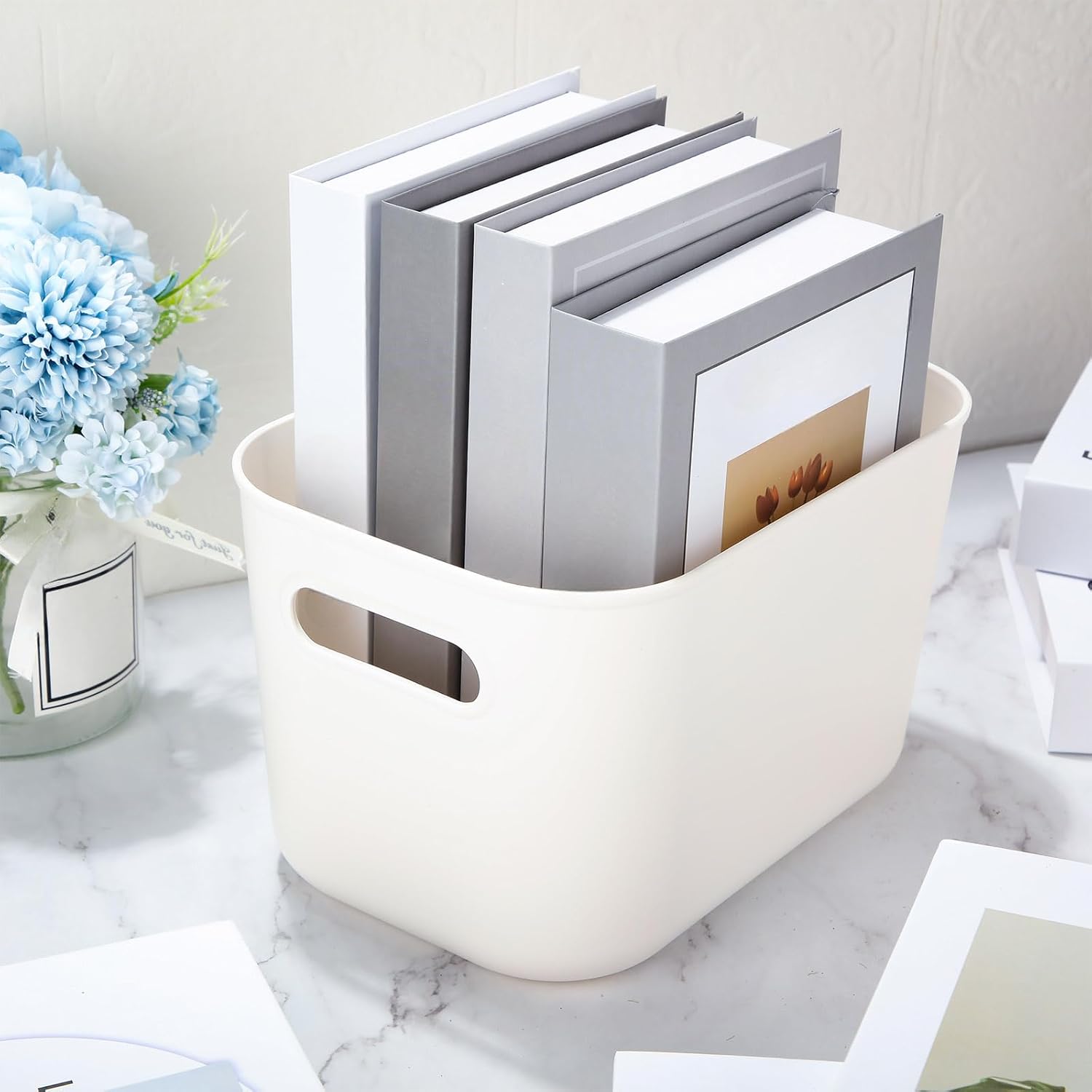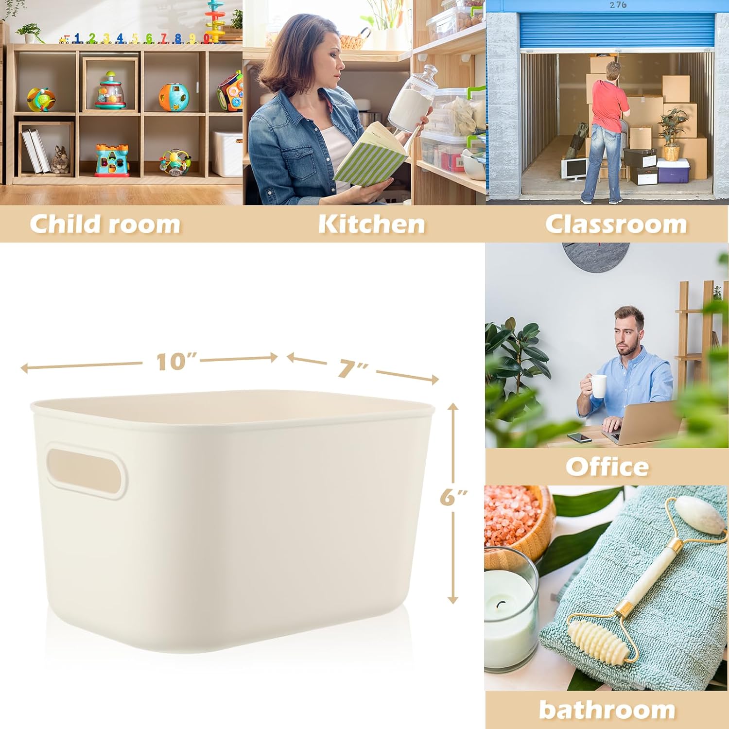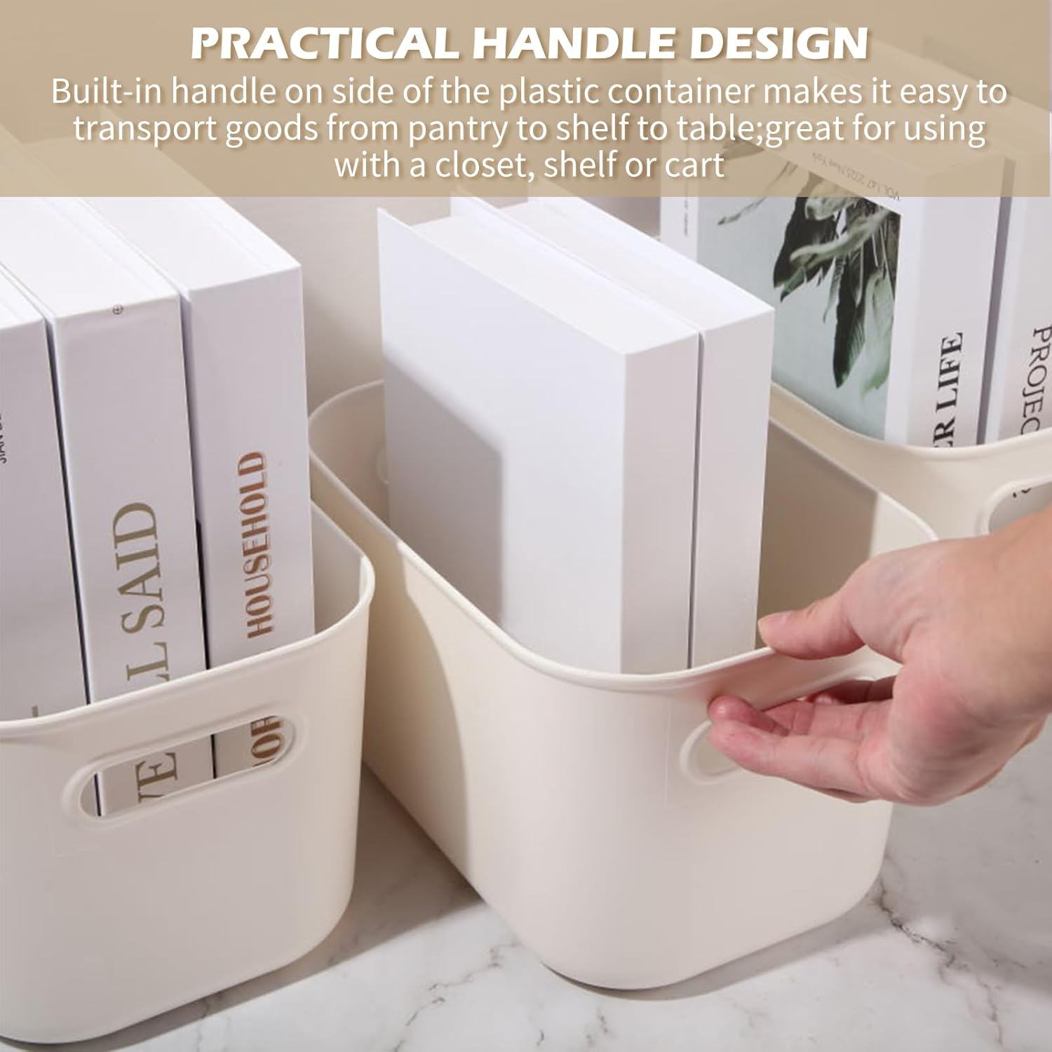 - Multipurpose Storage Bin Set: you will receive 10 pieces of white plastic storage bins with handles, the ample quantity can certainly meet your daily storage requirements and classification needs, which can hold a lot of things, maximizing your space and making your home tidier and cleaner