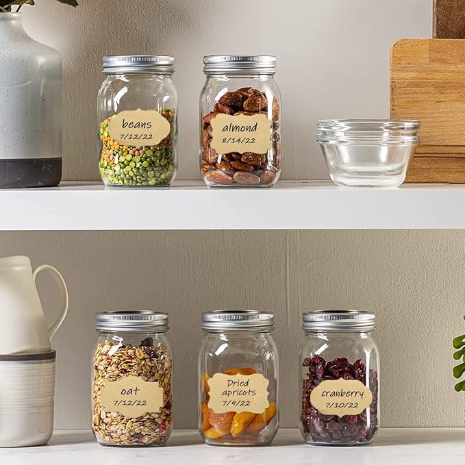 300 Pcs Gift Tag Name Labels Stickers, Kraft Blank Self-Adhesive Jar Labels for Storage Bins Essential Oil Spice Bottle Cosmetic Decoration Food Containers, Mason Labels Craft Presents Stickers