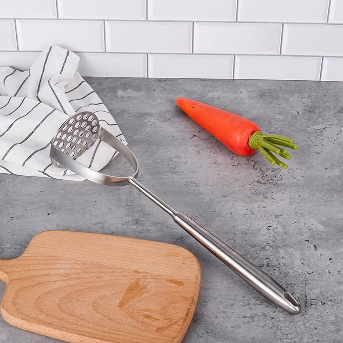 - Premium Quality: Crafted from food-grade SUS304 stainless steel, our potato masher is sturdy and durable. It’s dishwasher safe and easy to clean.