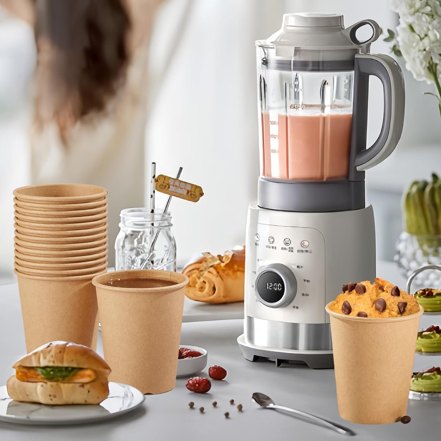 400 Pack 8 oz Kraft Paper Cups, Unbleached Disposable Paper Coffee Cups, Thickened Hot/Cold Beverage Drinking Cup for Party, Home, Cafes, Bistros, Businesses (Brown)