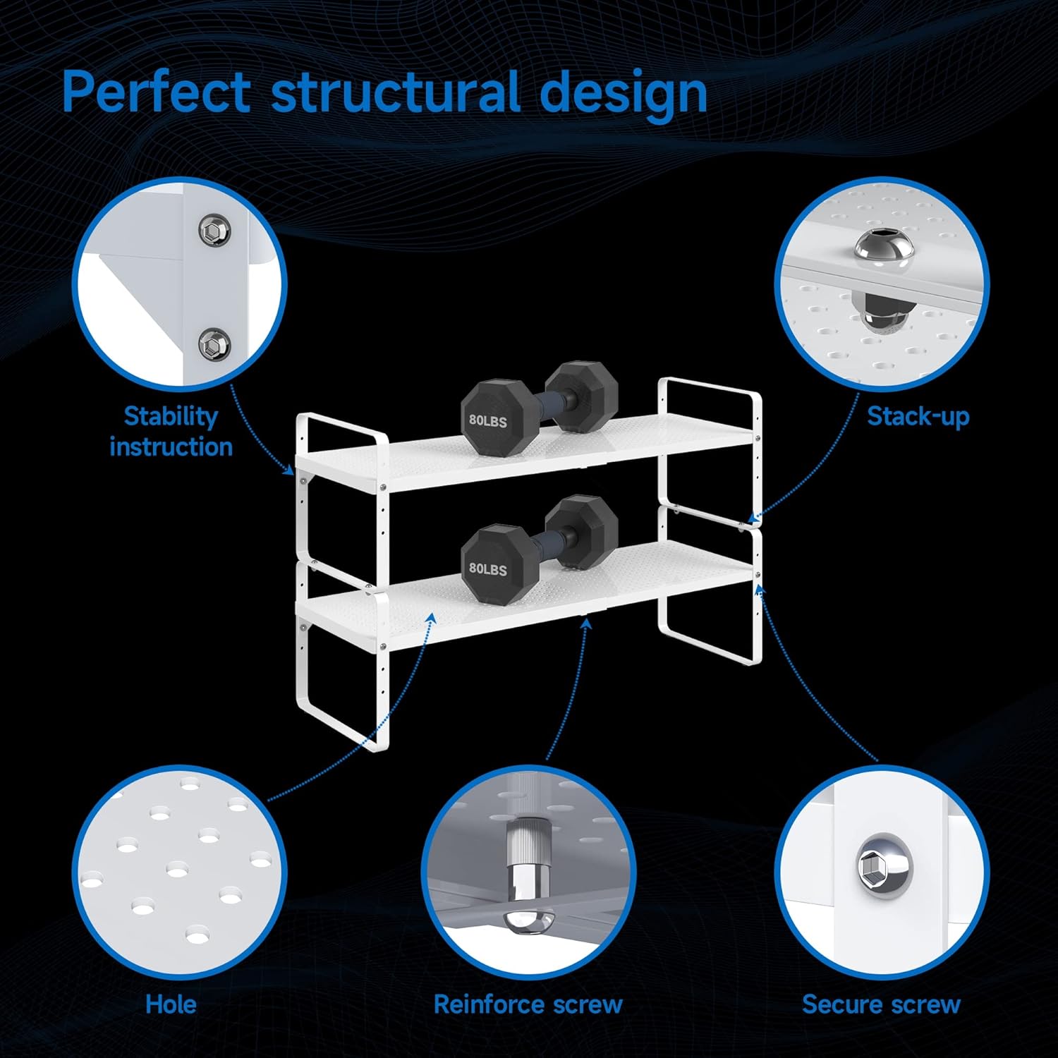 - Expandable &Stackable Cabinet Shelf Organizer: The width and height of the expandable kitchen cabinet shelves can be adjusted according to your needs, which is a very practical storage shelf. The dimensions before expansion are 16.5 "L x 10.2" W x 9.6 "H. Its length can be extended from 16.5" to 27". You can also stack the 2pack shelves together to form a two-layer storage space. Or it can be used as 2 single shelves separately