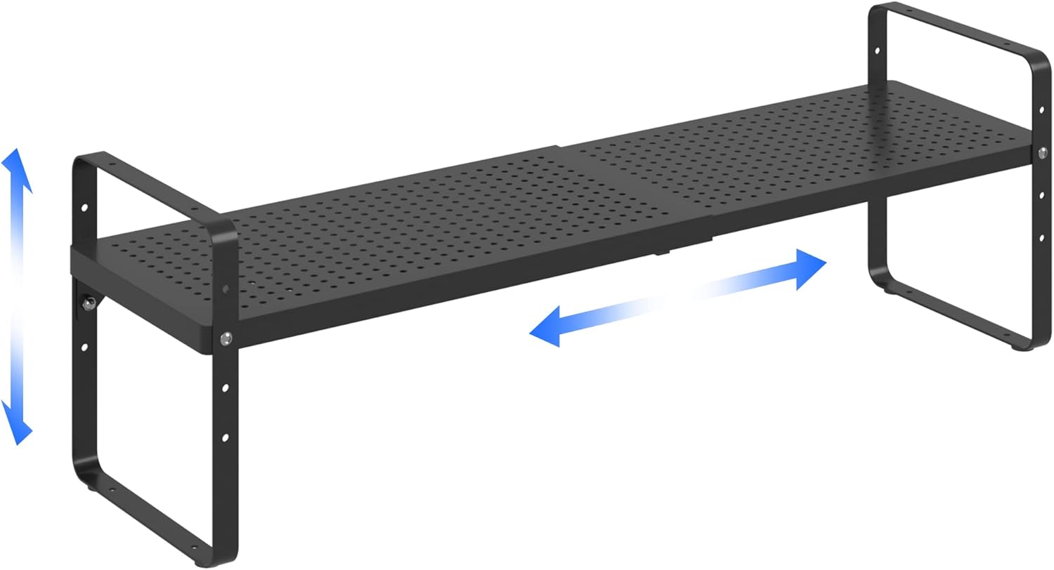 Expandable Cabinet Shelf Organizer Adjustable Metal Spice Rack Stackable Freestanding Counter Storage Shelves for Kitchen Cabinet Under Sink Office Desk (Black - 1Pack - L16.5-27'' * W8'' * H9.6'')