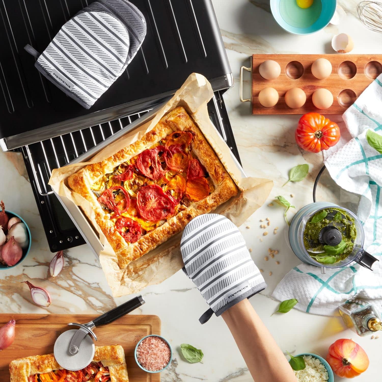 - SET OF TWO: This set includes two (2) KitchenAid Albany Mini Mitts, each measuring 5.5" W x 8" L.