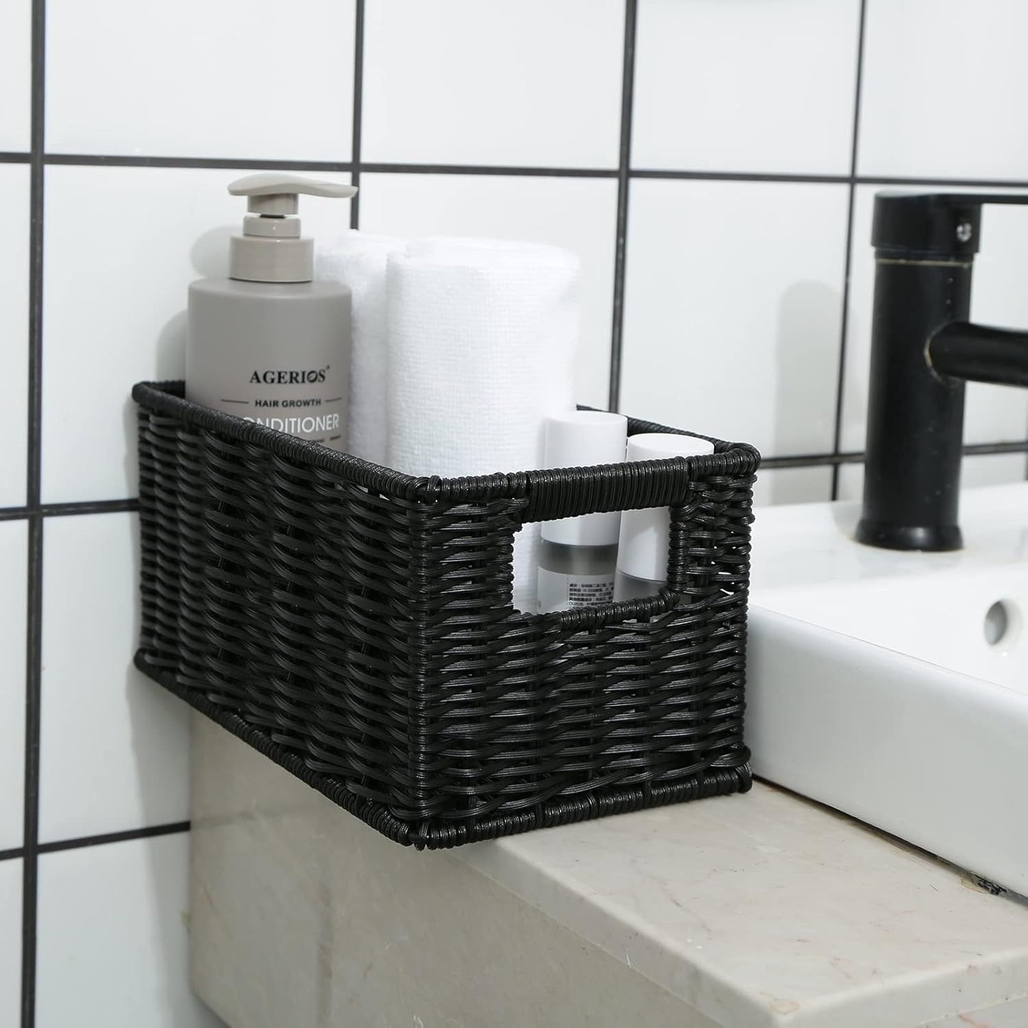 HOONEX Wicker Baskets for Storage, Plastic Baskets for Organizing with Dual Handles, Woven Baskets for Storage, Set of 2, Black