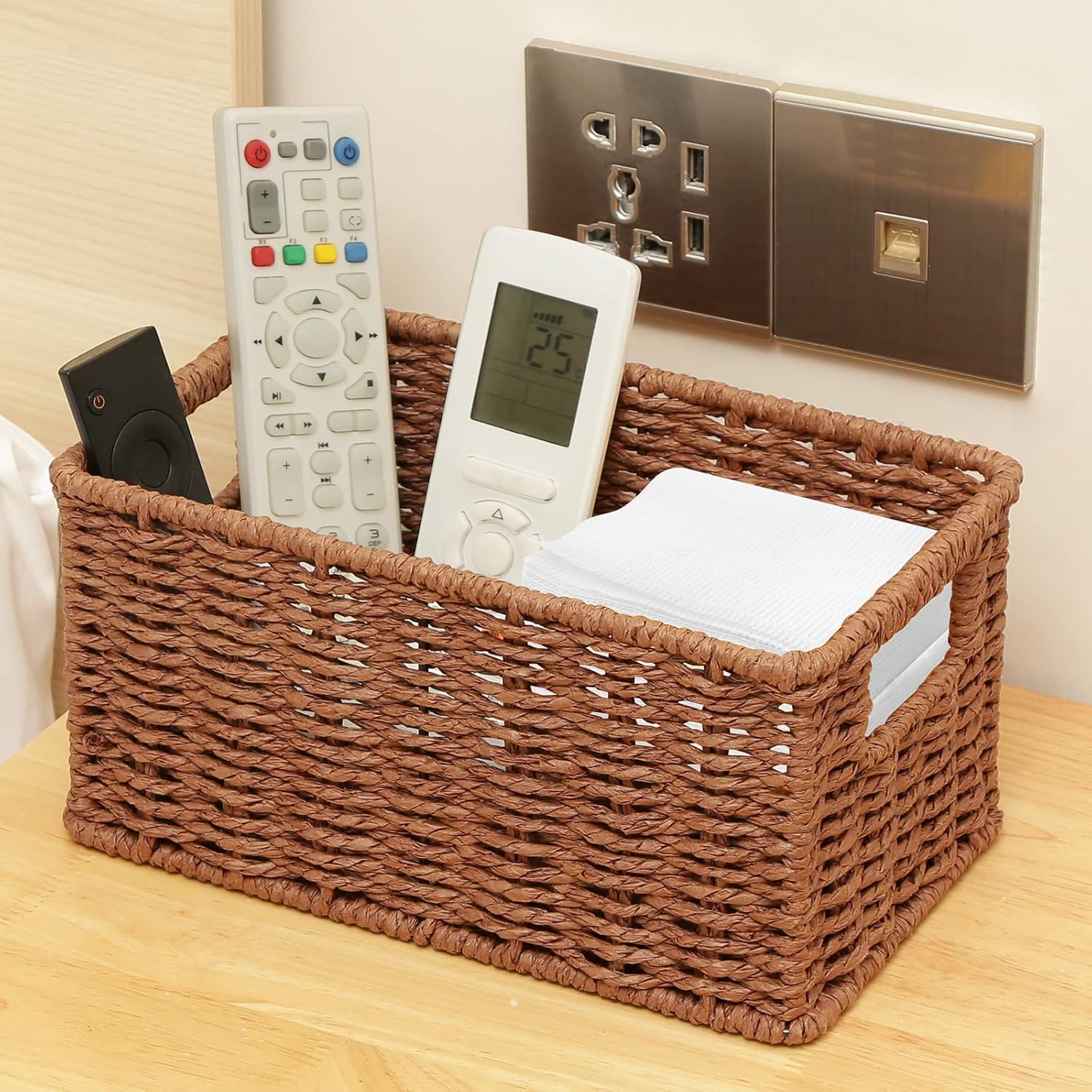 - Durable and Versatile: these pantry baskets are made of a metal wire frame and handwoven twisted paper rope, hand-woven by skilled workers, clean up and organize your home with these rattan-style plastic baskets.