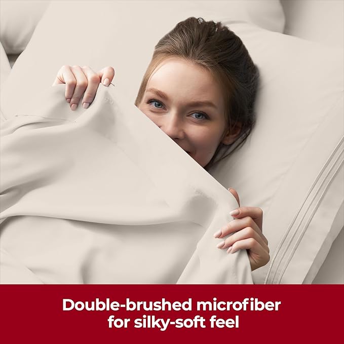 - Complete 4-Piece Full Bedding Set - Includes 1 Fitted Sheet (54"x75"x21"), 1 Flat Sheet (81"x96"), & 2 Pillowcases (20"x30") - all crafted from double-brushed microfiber for an ultra-soft feel. Temperature-regulating to keep you cozy in winter and cool in summer.