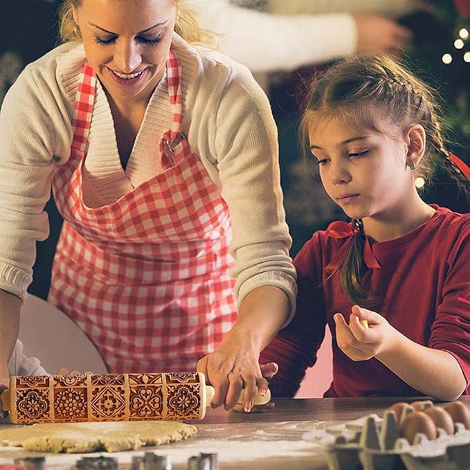 - 🎄🎄🎄🎄🎄Perfect gift: The rolling pin will be a great and considerate Christmas gift to family or friends. With cute pattern embossed, this rolling pin is a perfect tool to make cookies with kids to improve relationship. Baking with embossing rolling pin can be a fun, especially for kids! Hope in this beautiful festival, we share love and joy together. Happy Holidays!