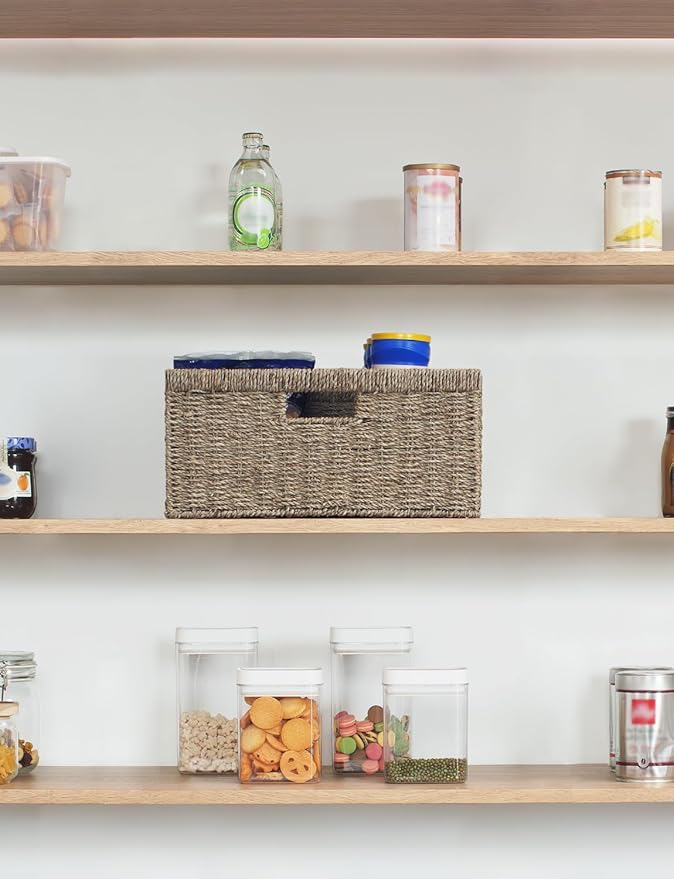StorageWorks Extra Large Wicker Baskets for Organizing, Seagrass Storage Basket with Built-in Handles, 1 Pack