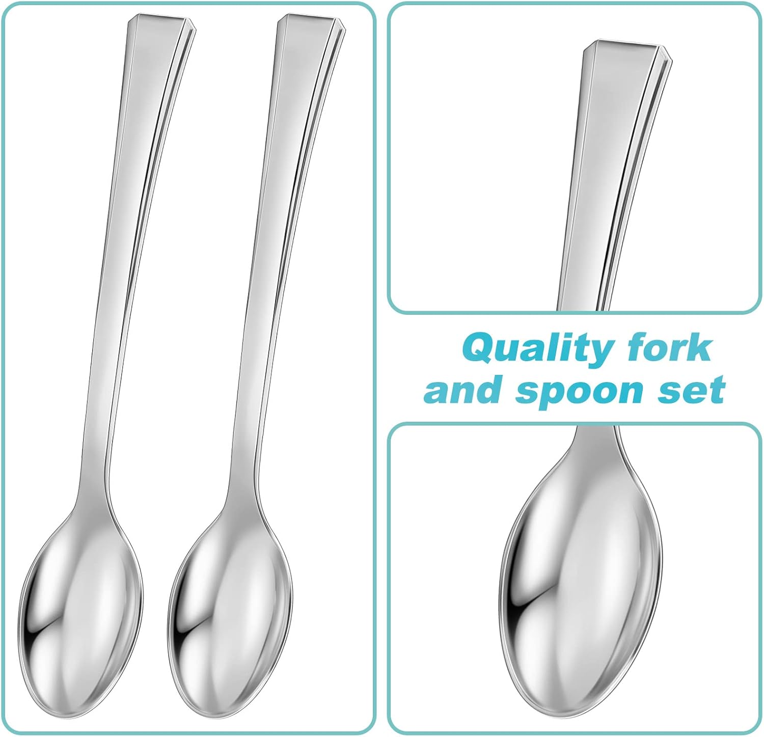 - Safe and Sturdy: the silver plastic silverware is mainly made of quality plastic, thick and sturdy, safe and reliable, not easy to break, deform, wear or tear, and smooth in surface, will not hurt your body, so you can use it with confidence
