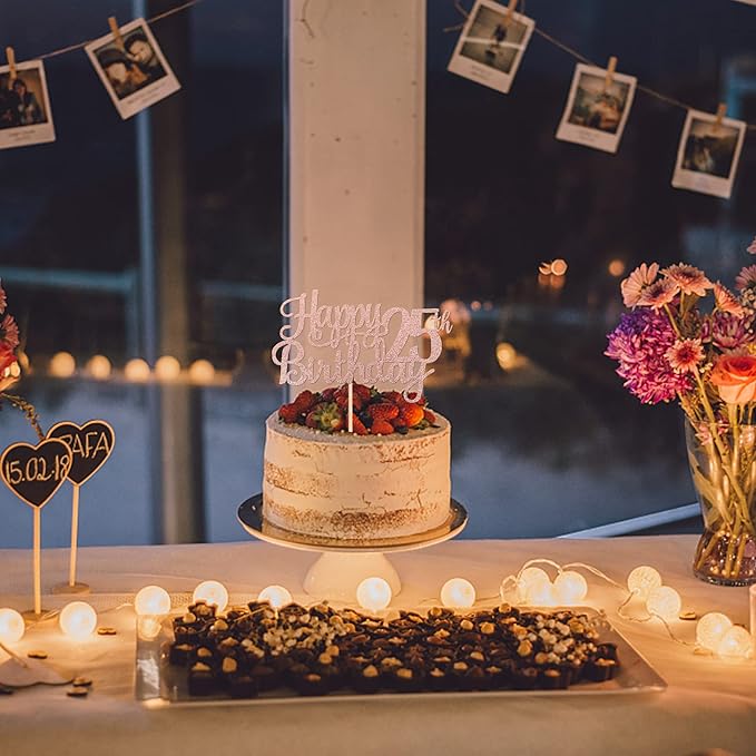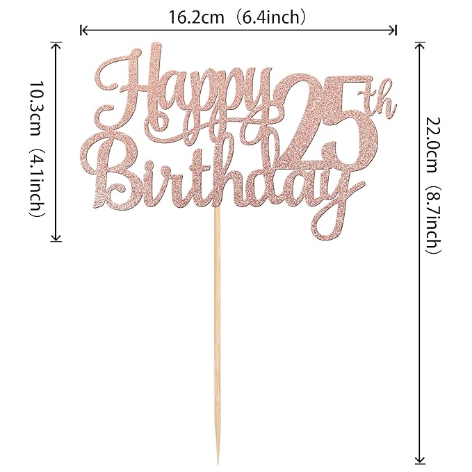 - Wide Usages ! The cake topper is perfect for happy 25th birthday theme party, cheers to 25 years birthday theme party cake decorations, they can make your cake more attractive and bring the fun to your party.You can also apply them for ice cream, fruits, cookies and other desserts.