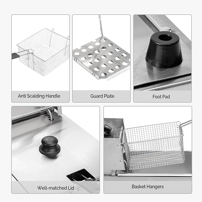 - Easy to Clean: The countertop deep fryer, made of heavy duty stainless steel, is solid in construction. Thickened tank for durable use, can be detached for easy cleaning. Besides, the oil tank is designed with handles, which makes it more convenient for you to take out the oil tank.