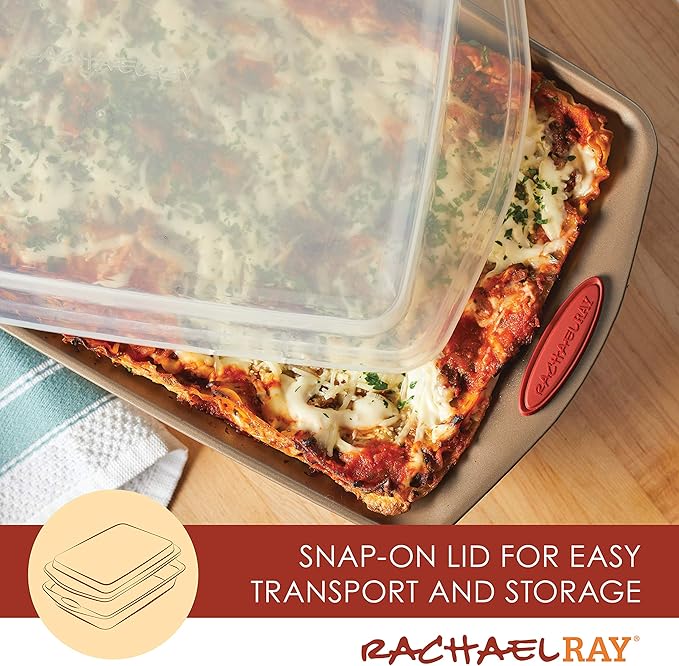 - Product 2: EVERYDAY DURABILITY: This Rachael Ray nonstick bakeware set features heavy gauge steel construction with rolled-rim bake pan edges designed for easy, everyday use