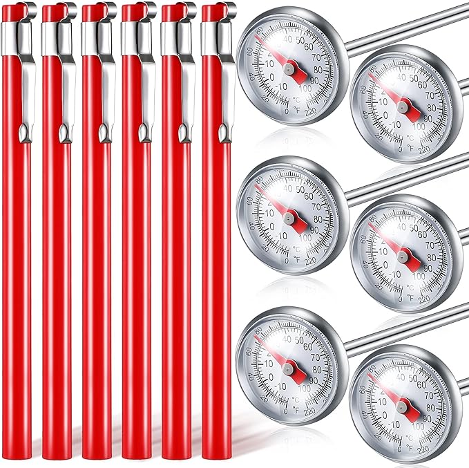 Xuhal 6 Pcs Stainless Steel Kitchen Thermometer with 5 Inch Long Stem 1 Inch Dial Thermometer Milk Frothing Food for Oven Probe Meat Grill BBQ Cooking Chocolate Water(Red)
