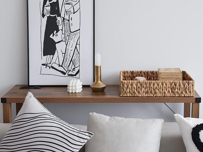StorageWorks Large Water Hyacinth Tray for Bathroom, Wicker Storage Basket for Shelves, Handwoven Natural Hyacinth Baskets for Organizing, 2-Pack