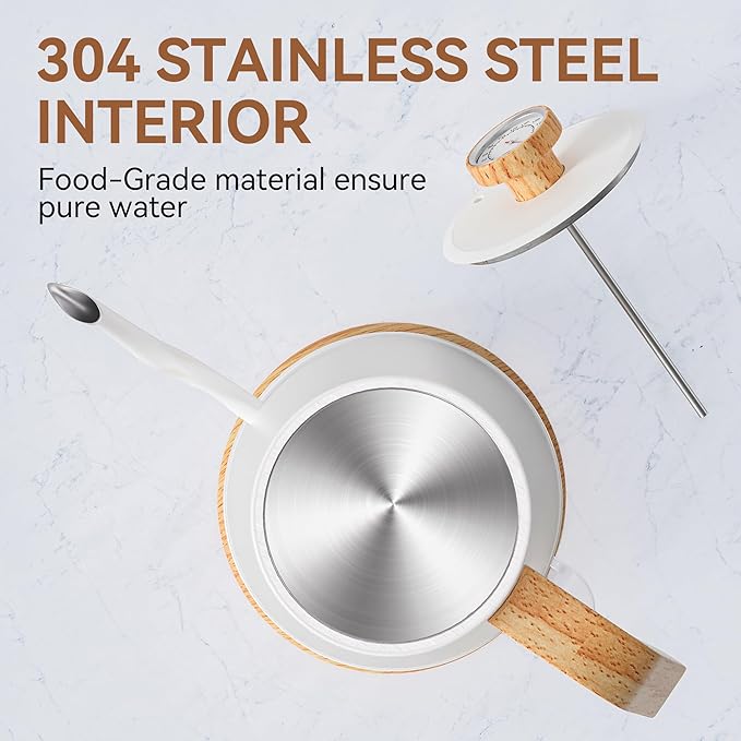 - 【Built-In Thermometer】The on-lid thermometer shows the water temperature. The electric kettle with thermometer shows the temp as it rises, and works well if you're trying to make a drink that should be a bit cooler than boiling temperatures. This unique feature helps you to get the exact temperature you want for your coffee, tea, or milk.