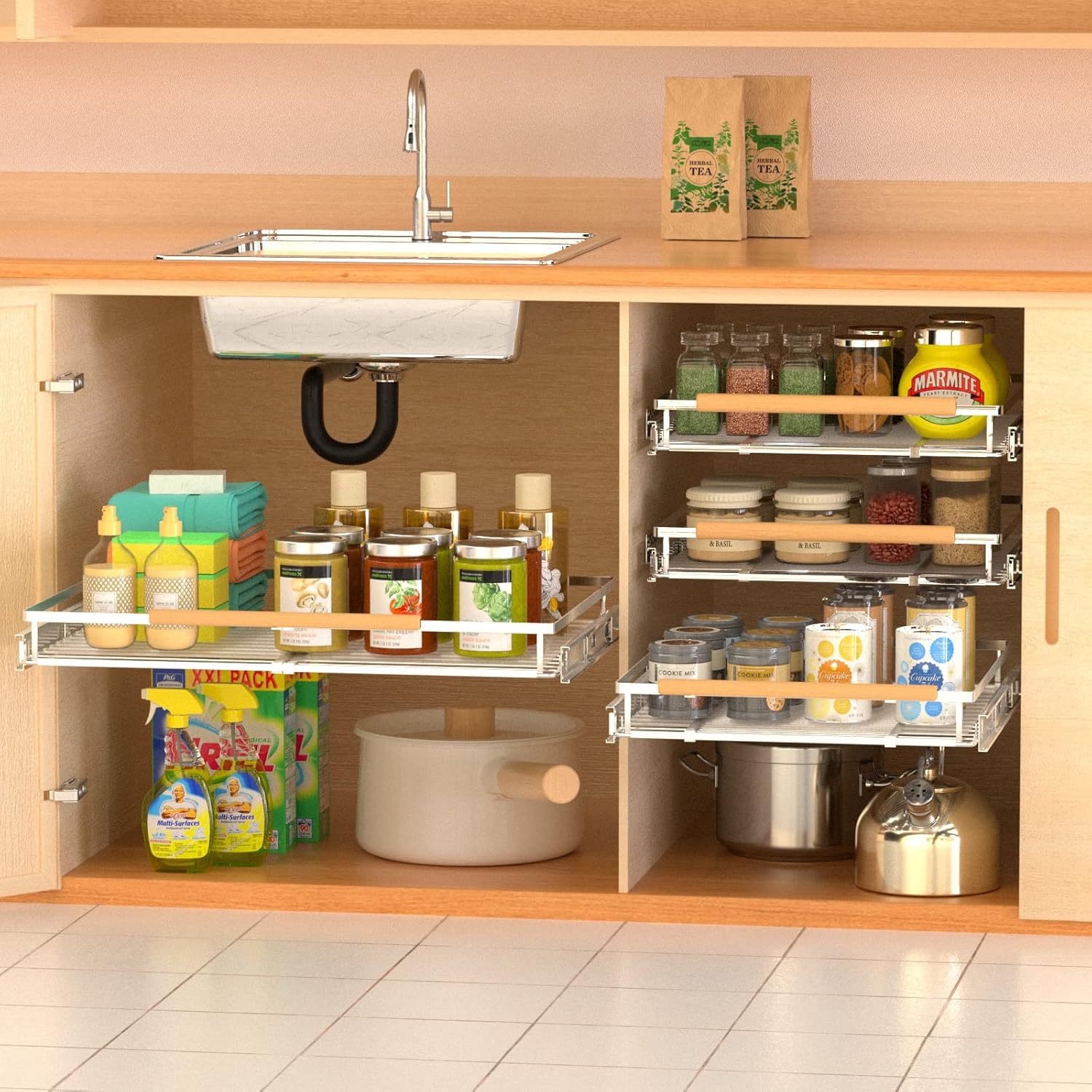 - SMOOTH SLIDE-OUT ORGANIZER: Industrial-grade ball bearing system ensures quiet and smooth sliding every time. Don't have to worry about noise when you pull out and push in