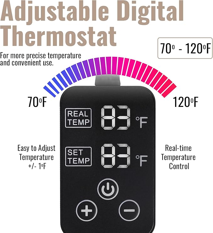 - 70°F -120°F Thermostat Controlled: Warming Mat accurately raises the temperature to a maximum of 30⁰F above ambient room temperature.