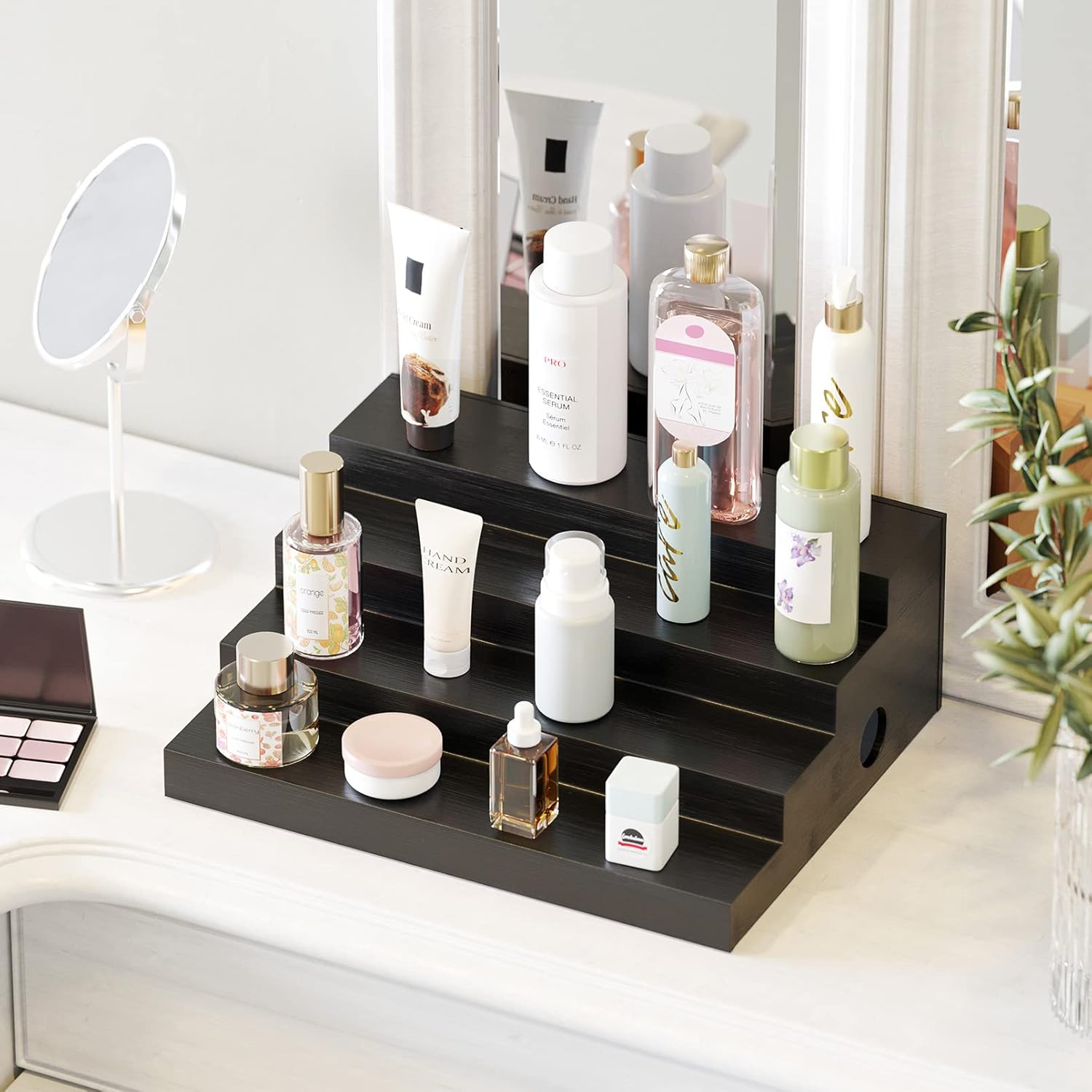- STURDY CONSTRUCTION - Made of durable solid bamboo instead of plastic; Sturdy enough to hold different sizes spice jars, essential oils liquor bottles, cosmetics like lipstick and even canned goods