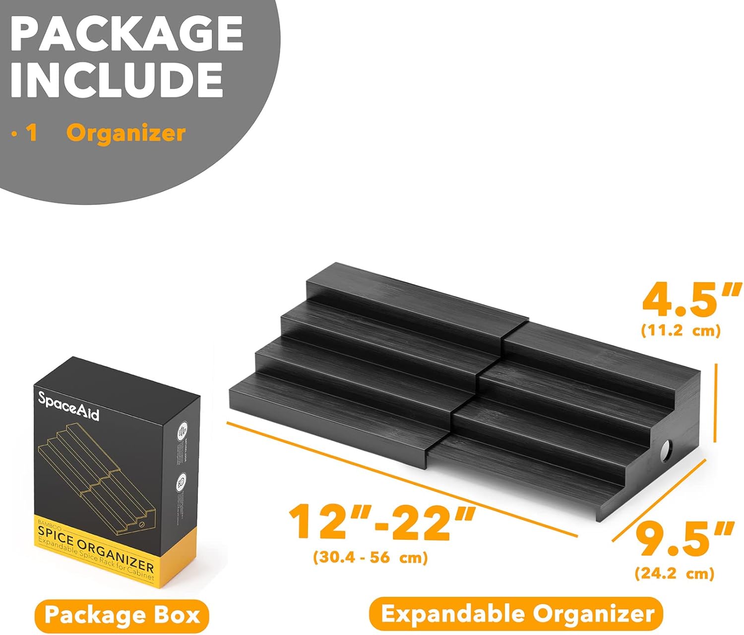 - EXPANDABLE SPICE SHELF - Keep your home clean and keep track of your spice jars better with this bamboo organizer holder; The spice rack is expandable and adjustable from 12" wide to 22" wide