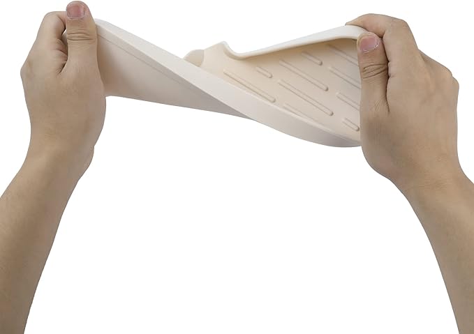 Silicone Bathroom Soap Dishes with Drain Spout-Bathroom and Kitchen Sink Organizer,Sponge Holder,Dish Soap Tray,Perfect for Dispenser,Scrubber,Bottle,Cup on Sink or Counter-Tapioca 12"×4"