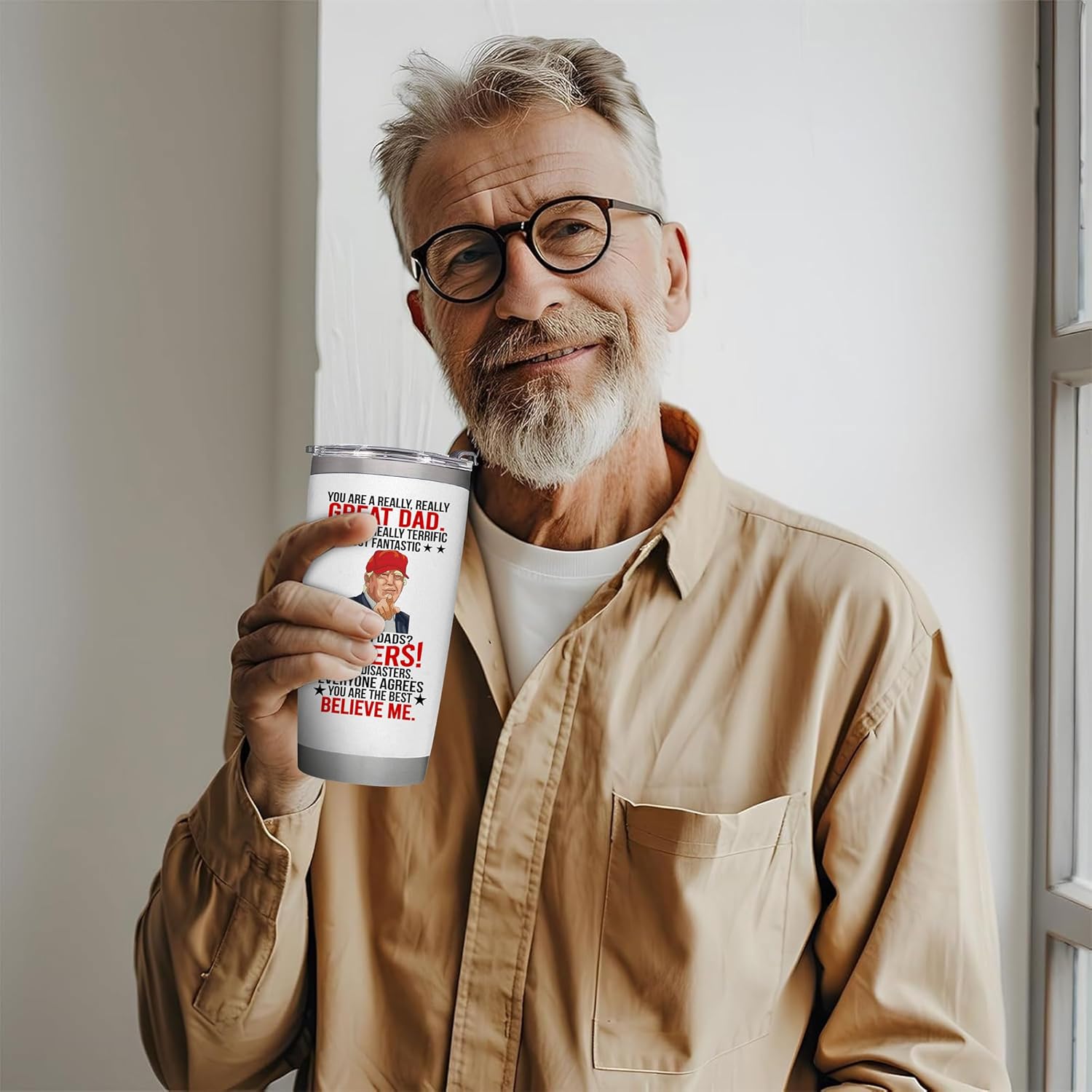 - PORTABLE TRAVEL TUMBLER : Our coffee tumbler is designed to be portable and to fit into most cup holders so dad can bring it everywhere. He will be reminded of a lovely memory whenever he uses the cup, while working, exercising, or in any daily activity