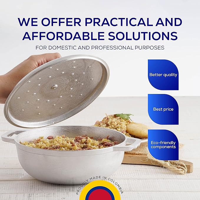 - ✅ Durable & Efficient Cast Aluminum Caldero – Perfect for Everyday Cooking: Designed for home kitchens, this lightweight yet ultra-resistant 6.3 QT caldero ensures even, rapid heating, allowing you to prepare meals faster and more efficiently. The premium stainless cast aluminum construction helps retain flavors, ensuring that every dish is cooked to perfection. Plus, it’s easy to clean and won’t absorb odors or alter the taste of your food.