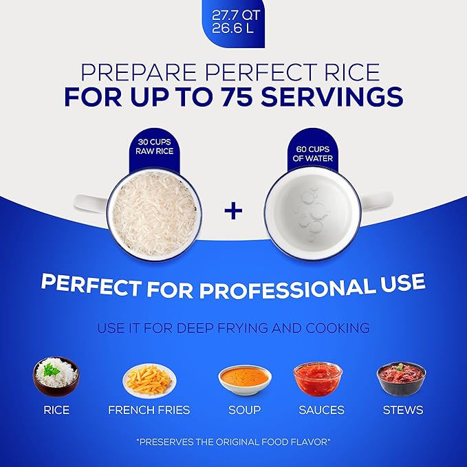 - 🍛 Feed the Masses with Confidence: This oversized cooking pot holds up to 75 servings of rice, making it a must-have for large-scale meal prep. Beyond rice, it's perfect for soups, sauces, beans, stews, and more, giving professional chefs limitless possibilities. Whether you run a high-traffic restaurant, catering service, or hotel kitchen, this pot delivers the volume, reliability, and efficiency you need.