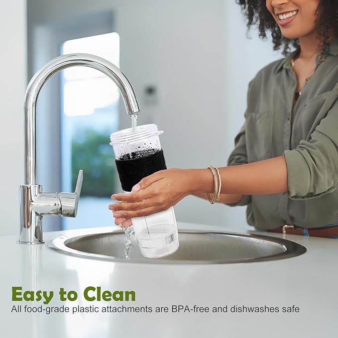 - [Easy to Use & Clean] One-touch operation, you can make your favorite foods easily in 10 seconds. Blender gives you a quick and effortless way to make smoothies, shakes and juices on the go. All detachable parts are dishwasher safe(except motor base and chopper blades).