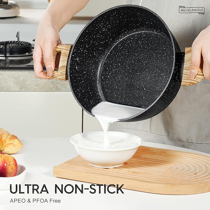 MICHELANGELO 4.3 Quart Nonstick Soup Pot with Lid, Non-Toxic Granite Coating, Induction Compatible, Non Stick Pot for Cooking with Stay-cool Handles, Black