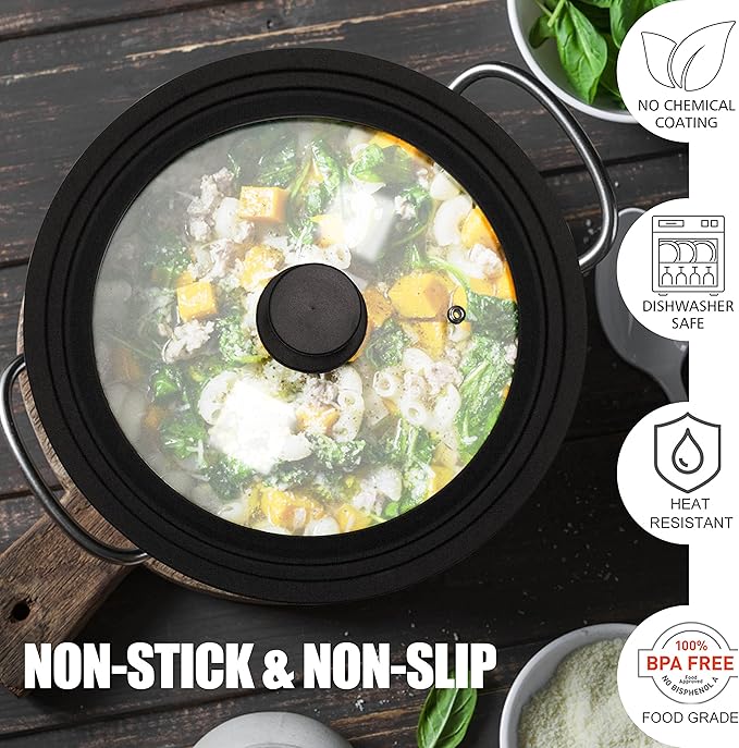 Anaeat Universal Pot Lid Replacement Knobs - Heat Resistant Silicone Pan Lid Holding Handles, Soft Non-Slip Knob for Kitchen Cookware Lid & Cover (2 Pack Black)
