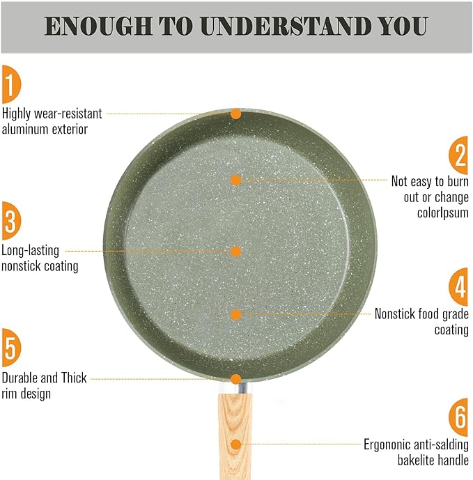 - Kitchen Cookware Set 12 Pieces: Include 8-inch fry pan / 11-inch fry pan / 9.7-inch Deep Fry Pan with lid / 1.5Q saucepan with lid / 3Q casserole with lid / 5Q casserole with lid / 2 pcs silicone utensils. Easy Clean & hand wash recommend