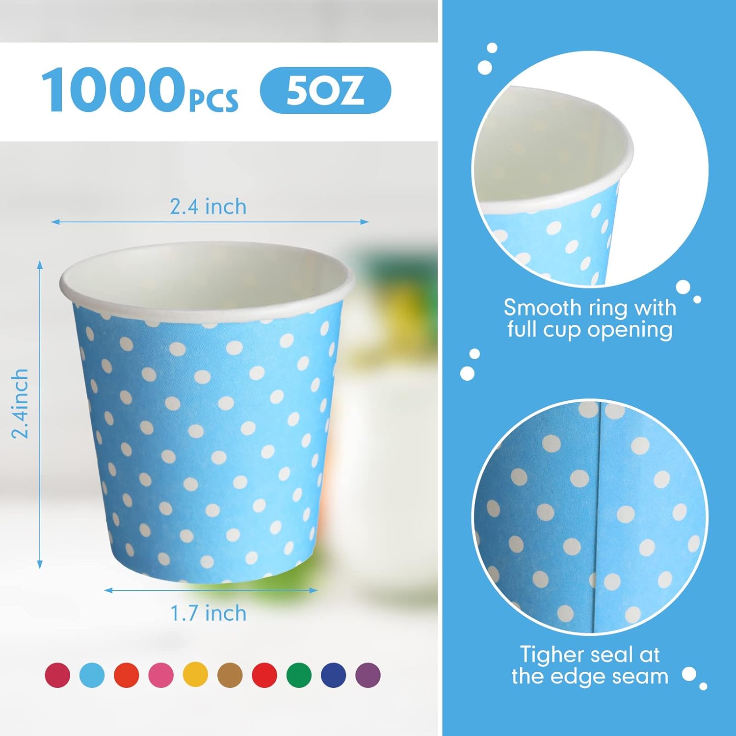 Thenshop 1000 Pack 5oz Paper Cups, Multicolor Small Disposable Cups, Dot Beverage Drinking Mini Mouthwash for Parties, Picnic, Travel, Barbecues and Event, 10 Colors