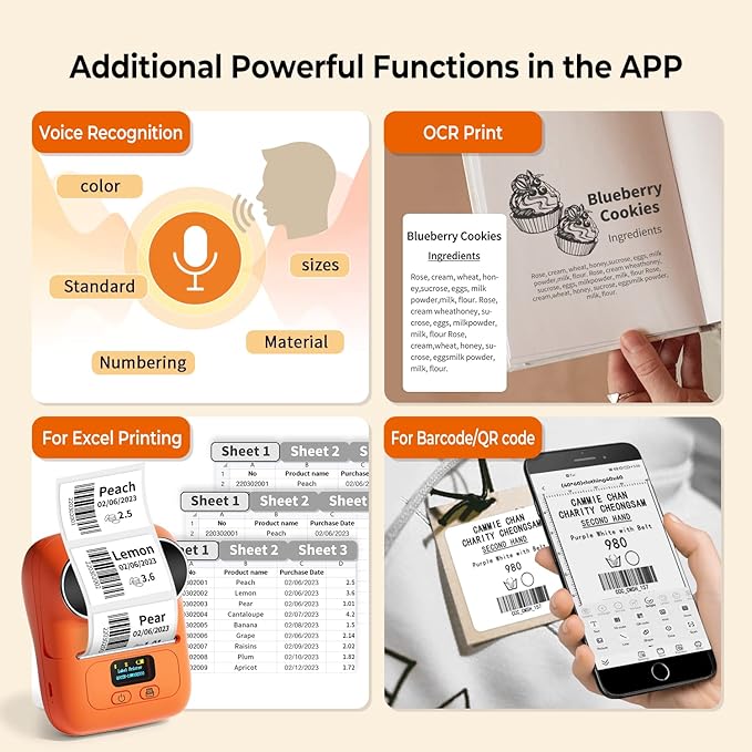 - Powerful Function Printer : OCR-Optical Character Recognition, recognize text on images in 4 seconds. You can enjoy converting the text in the photos directly into editable text with Phomemo-M110 label printer. label printer for small business, a good helper for work and life.