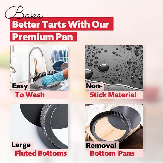 - ❖ No More Spilling: Tired of messy leakage ruining your baking experience? Our advanced technology-fitted tart pans with removable bottoms help you bake quiche like a pro without fear. Take your baking game to the next level with our leak-proof pans