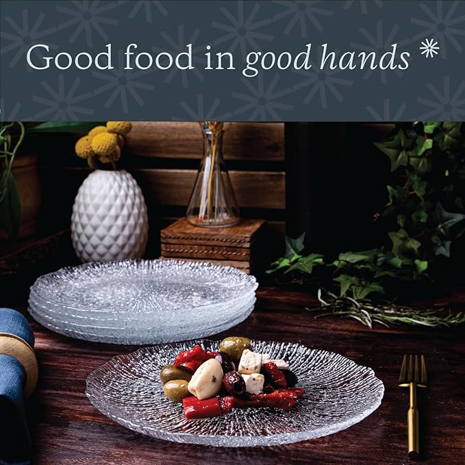 - TEXTURED PATTERN: It's the clear glass look with a touch of added elegance! This classy set of dinner plates is sure to impress your family and friends. Makes a great gift, too!
