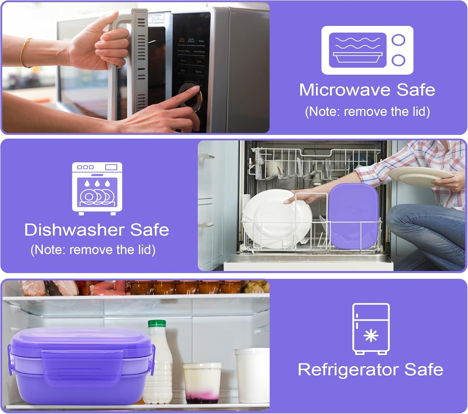 - EASY TO CLEAN: Made with food-grade, eco-friendly materials that are microwave and freezer safe, lunch box can be washed with soapy water or put in the dishwasher. (Remove the lid when using the microwave and dishwasher)