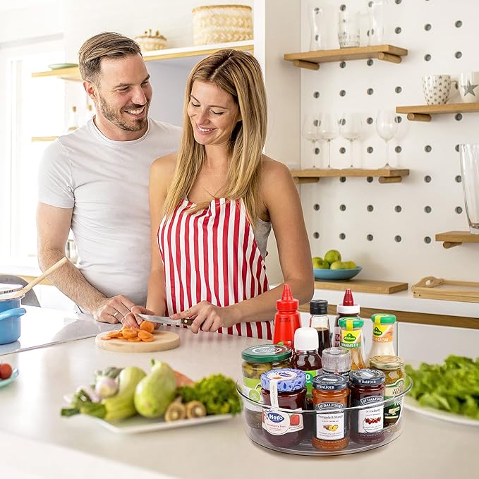 - SAFETY & HIGH QUALITY - This lazy susan cabinet organizer is made of premium durable PE and BPA-free, very fall resistant, offering a long-term durability and safety for food, which is easy to clean with mild soap and water. NOTE: DON'T PUT IT IN DISHWASHER