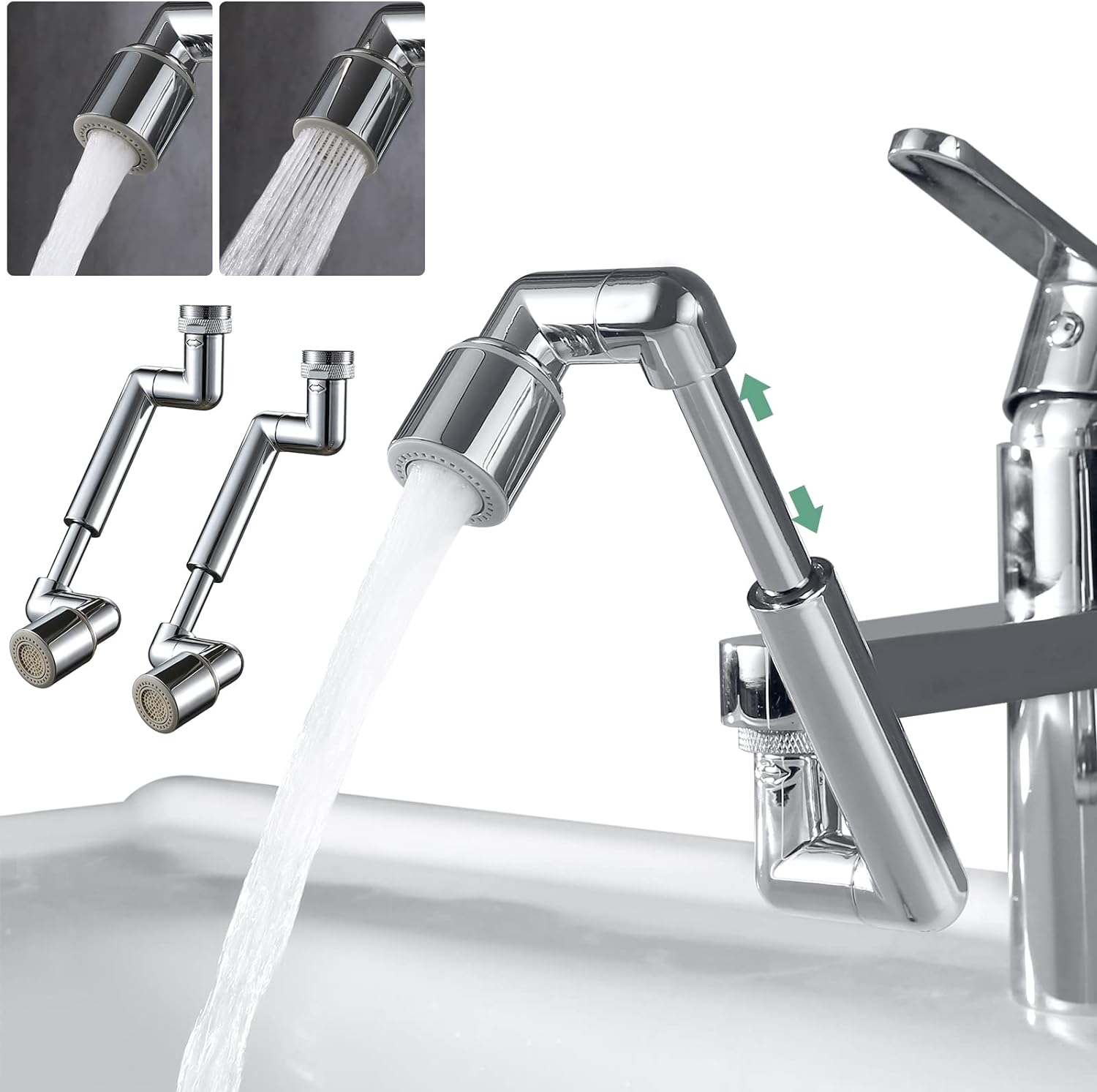 - 💧【Foldable & 1440° Swivel】Updates Based on 1080 Degree Faucet Aerator. The newly upgraded robotic arm faucet extender can rotate 1440 °, there are 4 positions to adjust the angle and each can be rotated at omnidirectional 360 degrees. It can be folded and stored. You can easily rotate the tap to the direction you want, making it more convenient to wash your face and gargle.