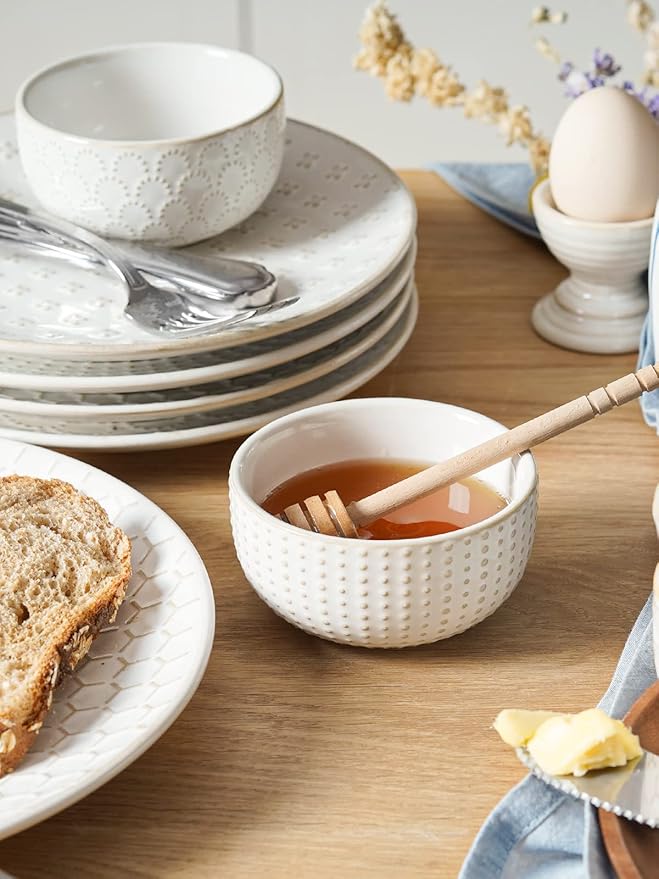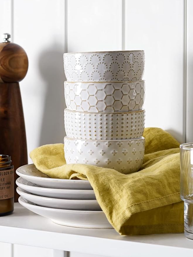 - House Warming Present Idea: Each bowl has a different pattern embossment. The outside of the bowl is embossment. The inner glaze is a smooth ceramic surface. New homeowners will like the timeless farmhouse look of these bowls