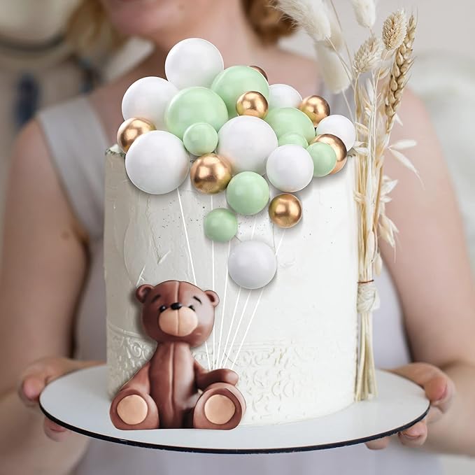 108 Pcs Balls Cake Topper DIY Cupcake Insert Foam Balloons for Cake Baking Wedding Anniversary Birthday Decoration(White, Green, Gold,Multi Sizes)